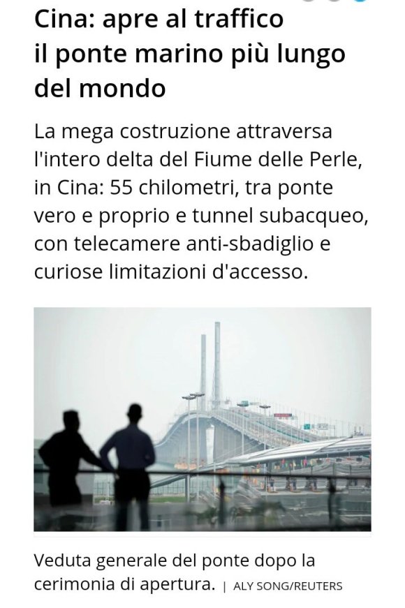 Categorie Senza categoria Il ponte più lungo del mondo. Post author Di fabrizio0127 Post date 14 ottobre 2019 Nessun commento su Il ponte più lungo del mondo. Condividi: Fai clic per condividere su X (Si apre in una nuova finestra) X Fai clic per condividere su Facebook (Si apre in una nuova finestra) Facebook Mi piace Caricamento... Correlati Di fabrizio0127 Storia-Arte-Scienza-Natura. La conoscenza è la mia passione. View Archive → ← Duomo di Milano. → #glass #art Lascia un commento Cancella risposta Δ
